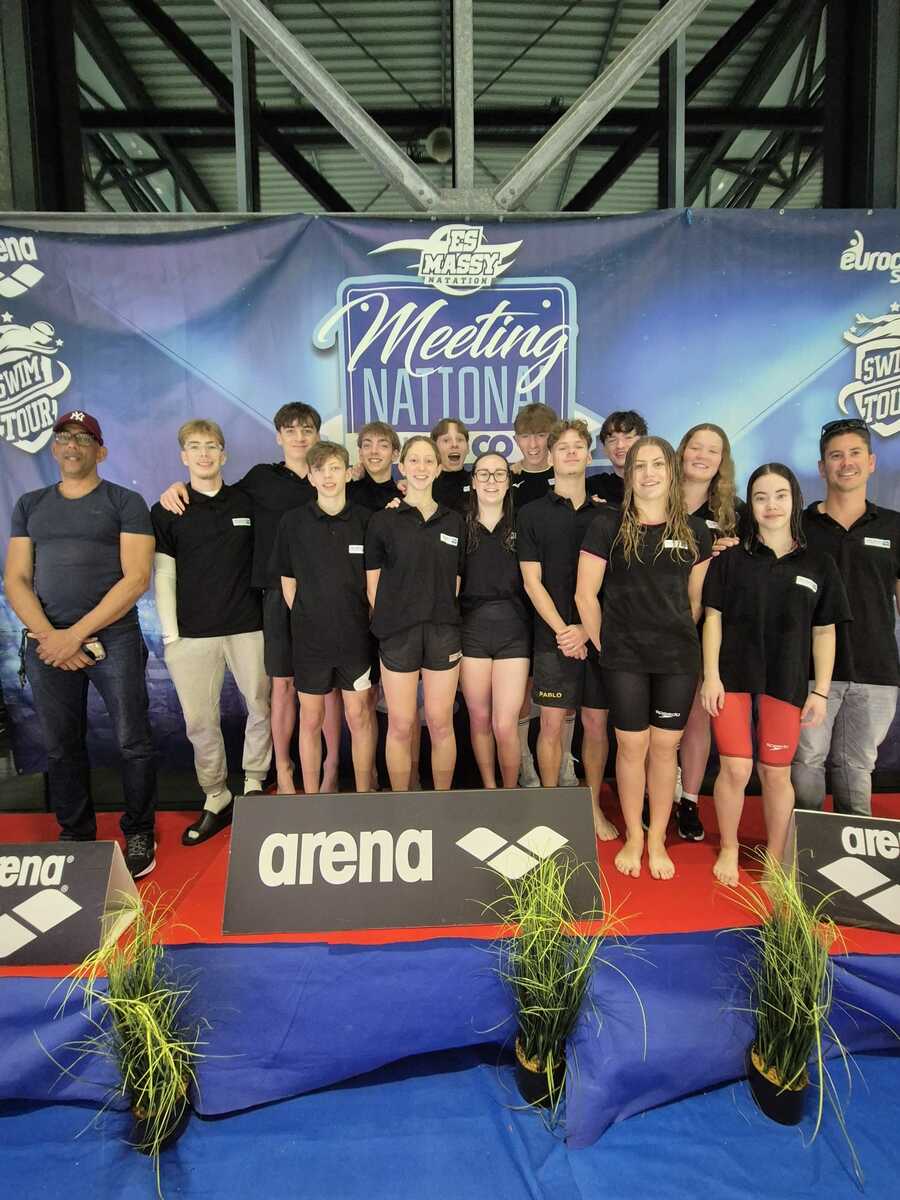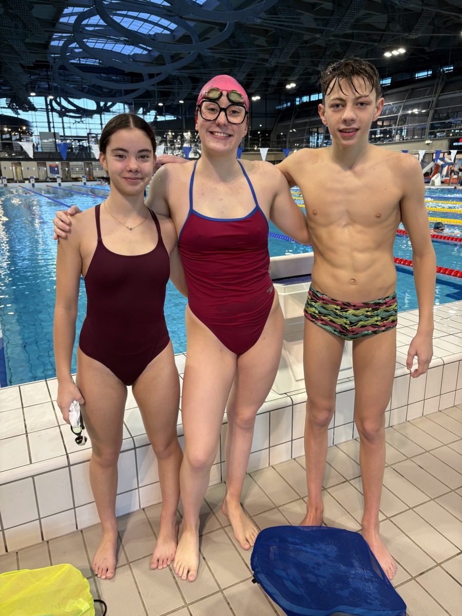 Ava Le Clerc, Louane Mercier-Mauduit et Arnaud Griffon ont participé au meeting national de Massy avec les autres membres du Team Natation Côtes d’Armor.