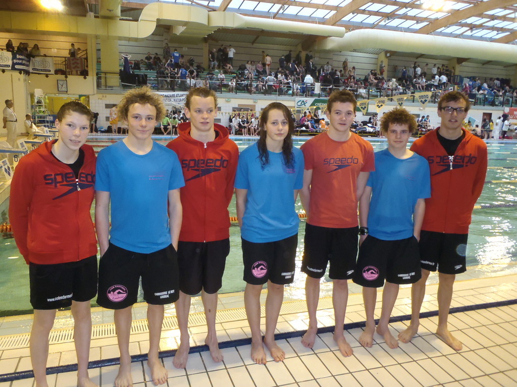Vendredi, samedi et dimanche dernier, 7 nageurs Loudéaciens (de gauche à droite sur la photo : Enora Maltret, , Kylian Dutreuil, Samuel Jan, Océane Guézo, Maxime André, Paul Hémonic et Félix Houard) ont participé aux championnats National 2 Hiver à Grand Couronne (qualificatifs pour les différents championnats de France) parmi plus de 600 nageurs venant de 120 clubs de tout le grand ouest.