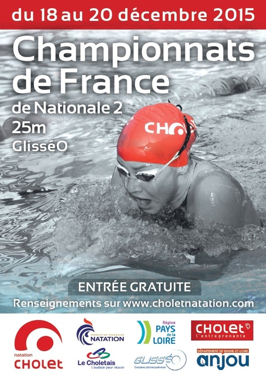 8 nageurs Loudéaciens sont qualifiés au championnat de France Nationale 2 en petit bassin qui aura lieu à Cholet du vendredi 18 au dimanche 20 décembre. Engagés parmi 765 nageurs de tout le grand ouest issus de 121 clubs, ils auront tous pour objectif de nager à leur meilleur niveau et surtout de décrocher leurs qualifs pour participer au championnat de Nationale 2 Hiver en grand bassin qui aura lieu à Tours du 18 au 20 mars 2016.