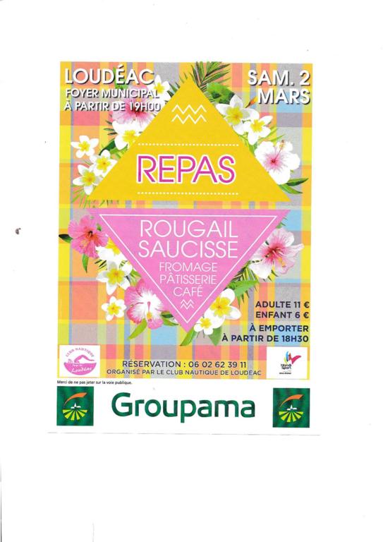 Le repas annuel du club aura lieu le samedi 02 mars 2019